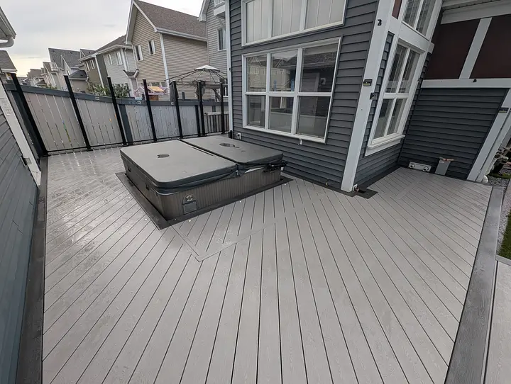 Low-maintenance composite and PVC decks built for Edmonton weather with clean finish and solid structure.