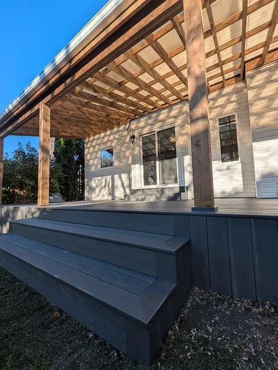 Low-maintenance composite and PVC decks built for Edmonton weather with clean finish and solid structure.